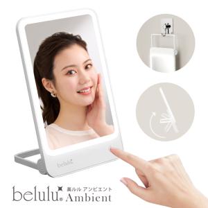 - 鏡 mirror 卓上 女優ミラー ライト付きミラー 充電式【美ルルアンビエント】40灯 充電タイプ 角度自由調整 belulu 正規品 修理・返品保証 ギフト