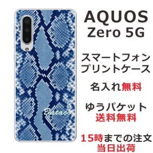 - AQUOS ZERO5G Basic ケース SHG02 A002SH アクオスゼロ5Gベーシック カバー らふら 名入れ へび柄 ブルー