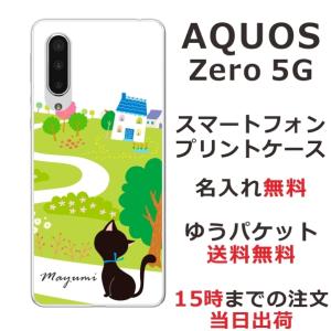 - AQUOS ZERO5G Basic ケース SHG02 A002SH アクオスゼロ5Gベーシック カバー らふら 名入れ 黒猫 お散歩