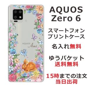 - AQUOS Zero6 ケース SHG04 アクオスゼロ6 カバー らふら 名入れ お花畑 ウサギ