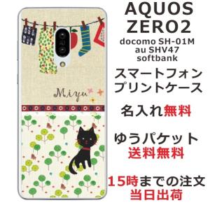 AQUOS Zero2 ケース SH-01M SHV47 906sh アクオスゼロ2 カバー らふら 名入れ 黒猫 洗濯物
