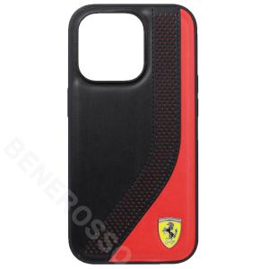 フェラーリ iPhone14Pro PU レザー ツートン バックカバー ブラック/レッド FEHCP14LPZIK