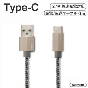 Type-C 充電ケーブル Type-C to USB 2.4A タイプc USB-A 1m データ転送 急速充電 iphone スマホ アンドロイド GEFON REMAX シルバー RC-110a