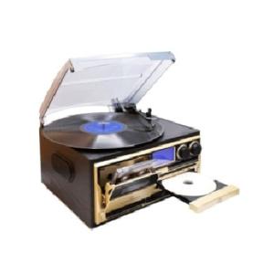 - 【送料別】クマザキエイム:AR-01G [ウッドブラック×ブラック×シャンパンゴールド] Retro Sound オールインワン・レコード・プレーヤー