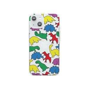 - 【個数:1個】DS24127I14 直送 代引不可 Dparks ソフトクリアケース for iPhone 14 カラフルザウルス 背面カバー型