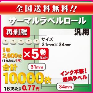 - 汎用 サーマルラベル ラベルロール 再剥離 白無地 縦31×横34mm 5巻 10000枚 ビジコム互換品 ラベル シール