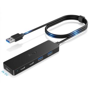 Aceele USB ハブ 5ポート USB A 3.0 2*USB-A+2*USB-C ポート 上差込タイプ Type-C 給電用ポート付き