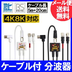 - 4K8K放送対応 アンテナ分波器 (BS/CS/地デジ対応) ケーブル一体型 F型-F型(0.2m) 4Cケーブル1.5m 金メッキ ホワイトまたはブラック