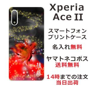 - Xperia Ace II SO-41B エクスペリアエース2 らふら 名入れ スマホケース 和柄 鳳凰赤