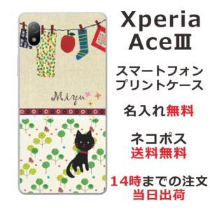 - Xperia Ace III SO-53C エクスペリアエース3 らふら 名入れ スマホケース 黒猫 洗濯物