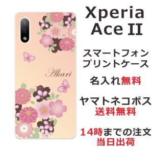 - Xperia Ace II SO-41B エクスペリアエース2 らふら 名入れ スマホケース 和柄 花 春蝶花