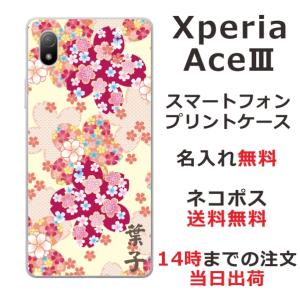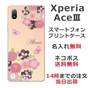 - Xperia Ace III SO-53C エクスペリアエース3 らふら 名入れ スマホケース 和柄 花 春蝶花
