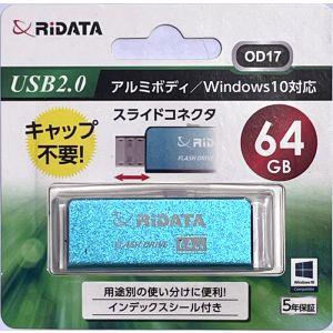 - 【メール便選択可】RIDATA USB-A OD17 64GB BL 2.0 アルミボディ スライド式