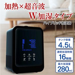 - ハイブリッド式 加湿器 卓上 おしゃれ 大容量 1年保証 簡単給水 パワーミスト 超音波 加熱式 ヒーター連続加湿 3段階加湿量調整 アロマ GF45HK