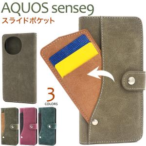 - アクオスセンス AQUOSsense 9 対応 レザー 手帳型ケース スライドカードポケット付き レザーケース 手帳ケース スマホケース AQUOSsense9 アクオスセンス9