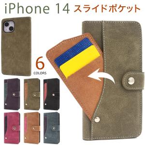 - iPhone14 ケース 手帳型 スライド式カード収納 ICカード対応 磁石不使用 アイフォン14 スマホケース アイフォンケース