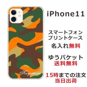 - iPhone11 ケース アイフォン11 カバー らふら 名入れ 迷彩 オレンジ