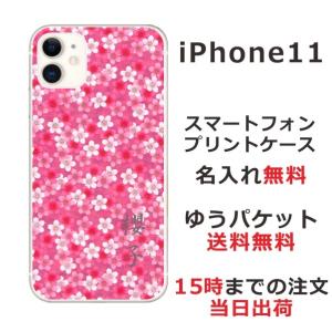 - iPhone11 ケース アイフォン11 カバー らふら 名入れ 和柄 桜ピンク