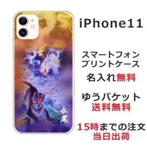 - iPhone11 ケース アイフォン11 カバー らふら 名入れ 和柄 龍虎蒼橙