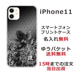 - iPhone11 ケース アイフォン11 カバー らふら 名入れ 和柄 昇り鯉黒