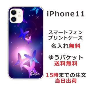- iPhone11 ケース アイフォン11 カバー らふら 名入れ 和柄 紫蝶々