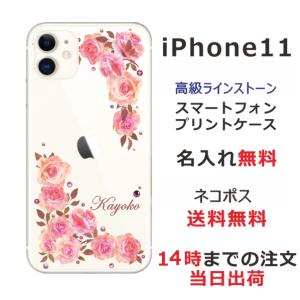 - iPhone11 ケース アイフォン11 カバー ラインストーン かわいい フラワー 花柄 らふら 名入れ 押し花風 ベビーピンク ローズ