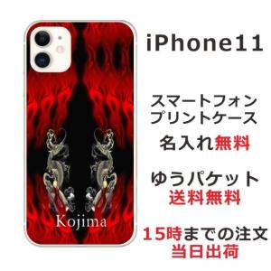 - iPhone11 ケース アイフォン11 カバー らふら 名入れ 和柄 炎闇双龍