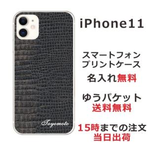 - iPhone11 ケース アイフォン11 カバー らふら 名入れ クロコダイル ブラック