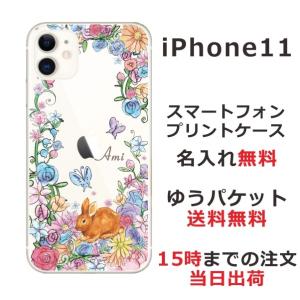 - iPhone11 ケース アイフォン11 カバー らふら 名入れ お花畑 ウサギ