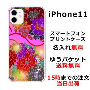 - iPhone11 ケース アイフォン11 カバー らふら 名入れ 和柄 和花ピンク