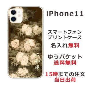 - iPhone11 ケース アイフォン11 カバー らふら 名入れ 和柄 セピア牡丹