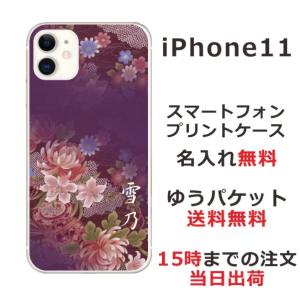 - iPhone11 ケース アイフォン11 カバー らふら 名入れ 和柄 和花紫桃グラデ