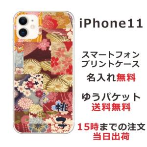 - iPhone11 ケース アイフォン11 カバー らふら 名入れ 和柄 円龍赤