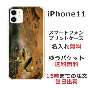 - iPhone11 ケース アイフォン11 カバー らふら 名入れ 和柄 黄金双鯉