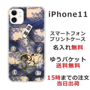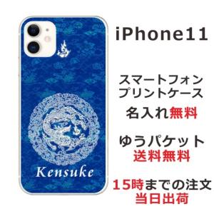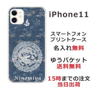 - iPhone11 ケース アイフォン11 カバー らふら 名入れ 和柄 円龍青