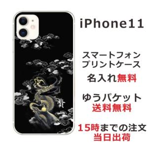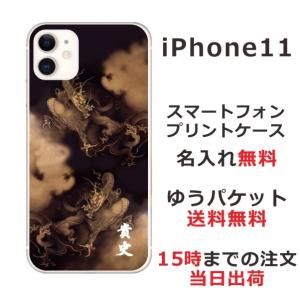 - iPhone11 ケース アイフォン11 カバー らふら 名入れ 和柄 黄金雲海龍