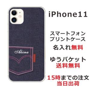 - iPhone11 ケース アイフォン11 カバー らふら 名入れ デニムプリントケース