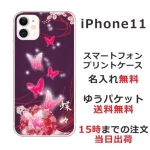 - iPhone11 ケース アイフォン11 カバー らふら 名入れ 和柄 紫闇光蝶