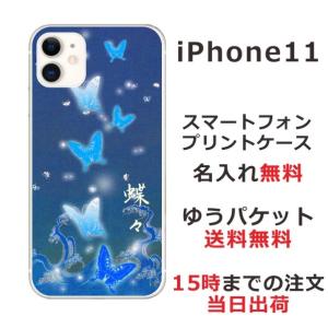 - iPhone11 ケース アイフォン11 カバー らふら 名入れ 和柄 蒼波光蝶