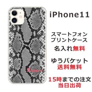 - iPhone11 ケース アイフォン11 カバー らふら 名入れ へび柄 ブラック
