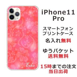 - iPhone11 Pro ケース アイフォン11プロ カバー らふら 名入れ ハイビスカスピンク