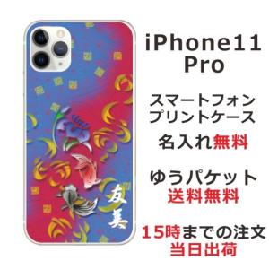 - iPhone11 Pro ケース アイフォン11プロ カバー らふら 名入れ 和柄 黄金双鯉