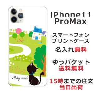 - iPhone11 ProMax ケース アイフォン11プロマックス カバー らふら 名入れ 黒猫 お散歩