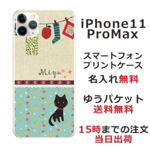 - iPhone11 ProMax ケース アイフォン11プロマックス カバー らふら 名入れ 黒猫 洗濯物