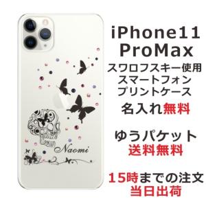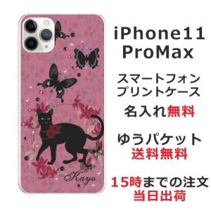 - iPhone11 ProMax ケース アイフォン11プロマックス カバー ラインストーン かわいい らふら 名入れ 黒猫 蝶