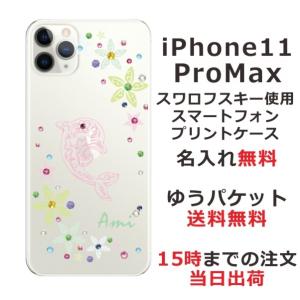 - iPhone11 ProMax ケース アイフォン11プロマックス カバー ラインストーン かわいい らふら 名入れ ドルフィン
