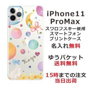 - iPhone11 ProMax ケース アイフォン11プロマックス カバー ラインストーン かわいい らふら 名入れ ムーンラビット