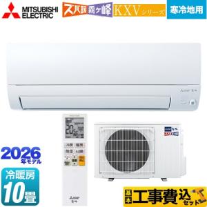 - 工事費込みセット KXVシリーズ ズバ暖 霧ヶ峰 住設モデル ルームエアコン 冷房/暖房:10畳程度 三菱 MSZ-KXV2826-W 暖房強化奥行すっきりモデル 寒冷地向け