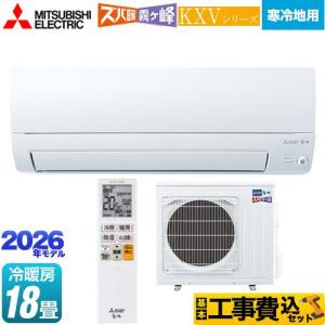 - 工事費込みセット KXVシリーズ ズバ暖 霧ヶ峰 住設モデル ルームエアコン 冷房/暖房:18畳程度 三菱 MSZ-KXV5626S-W 暖房強化奥行すっきりモデル 寒冷地向け