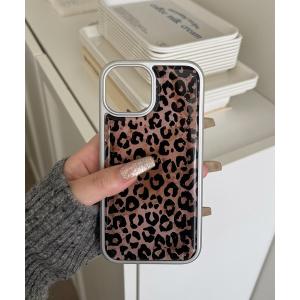 スマホケース レオパード柄 シルバーフレーム スマホケース